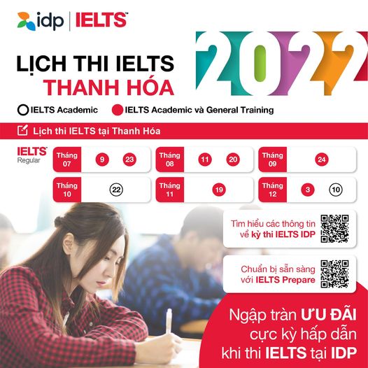 Nhằm đáp ứng nhu cầu thi ngày càng lớn của thí sinh tại Thanh Hóa, IELTS Champions vui mừng thông báo: IDP đã tăng tần suất thi tại Thanh Hóa trong thời gian tới, lịch thi cụ thể vui lòng xem tại ảnh dưới đây!