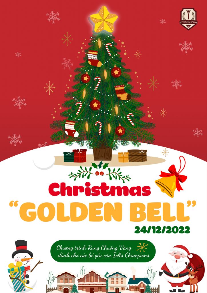Giáng sinh của các bạn học viên nhí tại IELTS Champions năm nay sẽ diễn ra như thế nào? Trong không khí rộn ràng, nô nức chờ đón Giáng sinh, IELTS Champions sẽ mang đến Cuộc thi Rung chuông vàng phiên bản Kids “GOLDEN BELL” – nơi các bạn nhỏ có cơ hội thể hiện sự hiểu biết của mình về ngày lễ thú vị này qua những phần thi đầy kịch tính, vui nhộn với những phần quà siêu hấp dẫn!