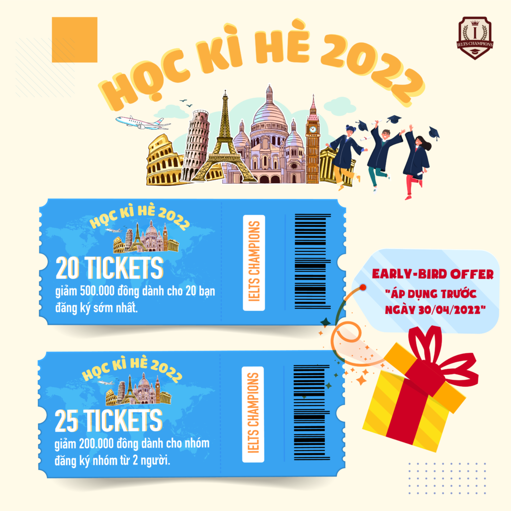 [LẦN ĐẦU TIÊN DIỄN RA TẠI IELTS CHAMPIONS] ƯU ĐÃI LÊN ĐẾN 700.000 VNĐ KHI THAM GIA CHƯƠNG TRÌNH HỌC KỲ HÈ 2022