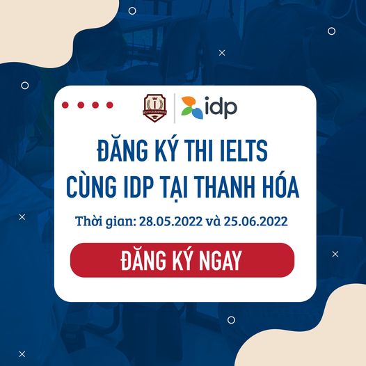 Nhằm giúp các bạn tối ưu thời gian di chuyển và có thể chuẩn bị tốt nhất cho kỳ thi quan trọng này, vào tháng 5 và tháng 6, IDP sẽ tổ chức thi IELTS tại Thanh Hóa vào hai ngày ??.??.???? ??̀ ??.??.????.