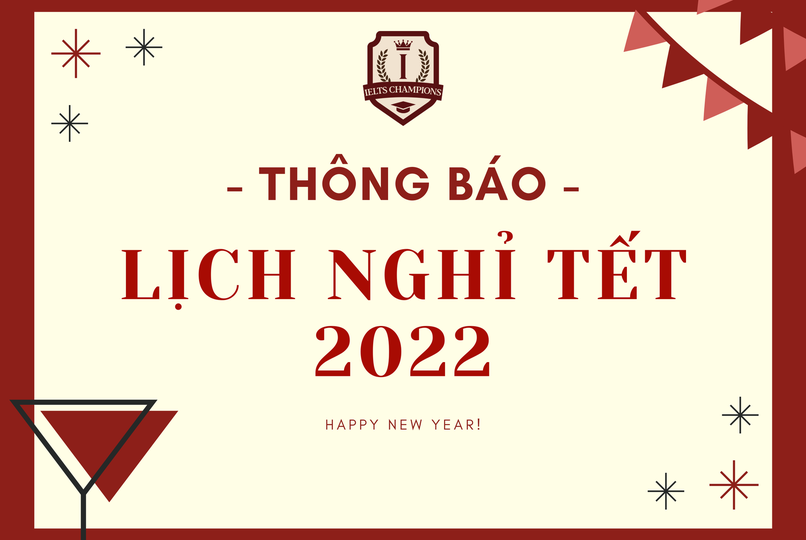 IELTS Champions xin được gửi tới quý phụ huynh và các bạn học viên thông báo về lịch nghỉ Tết dương lịch của trung tâm như sau: